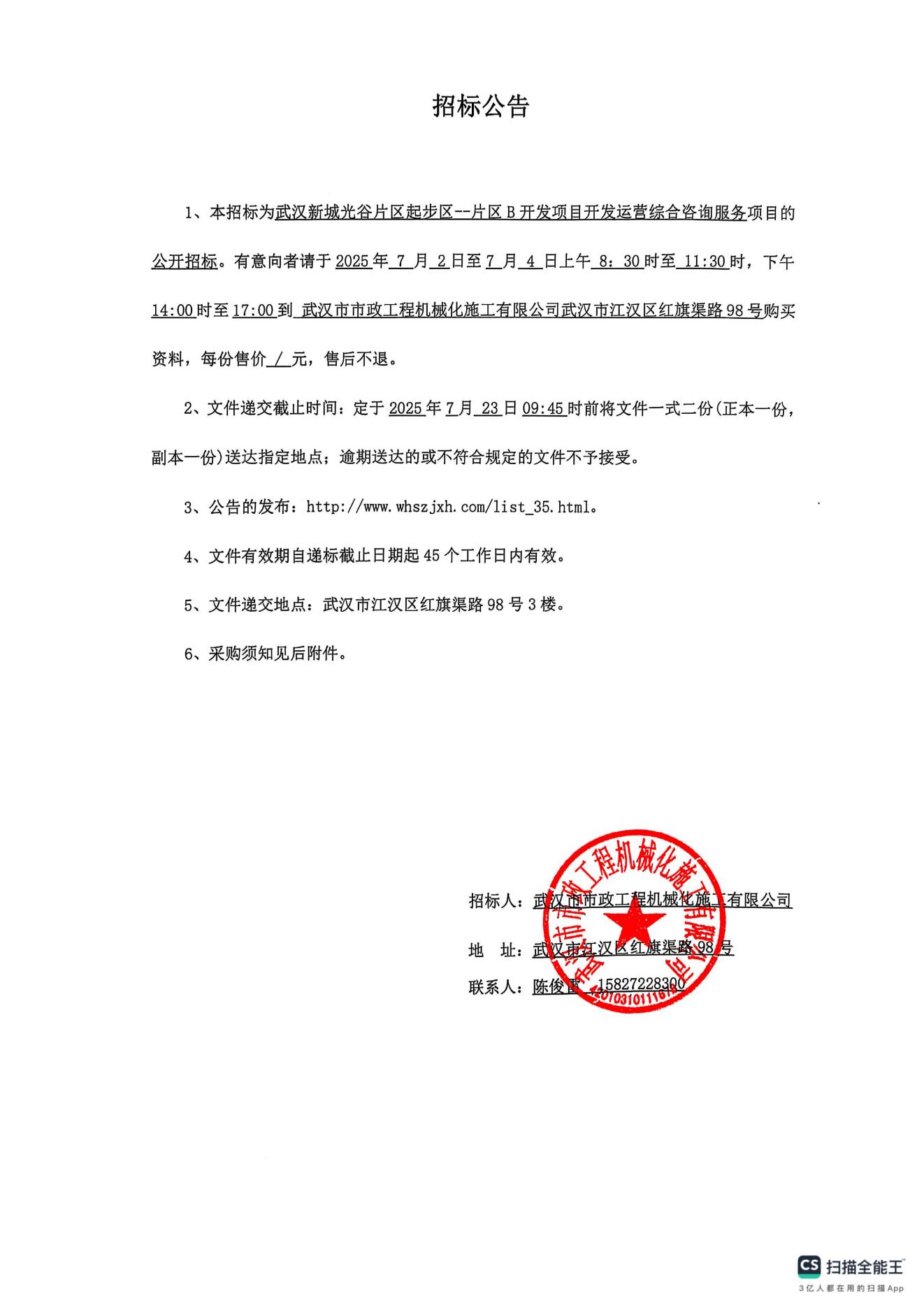武漢新城光谷片區(qū)起步區(qū)--片區(qū)B開發(fā)項目開發(fā)運營綜合咨詢服務招標公告